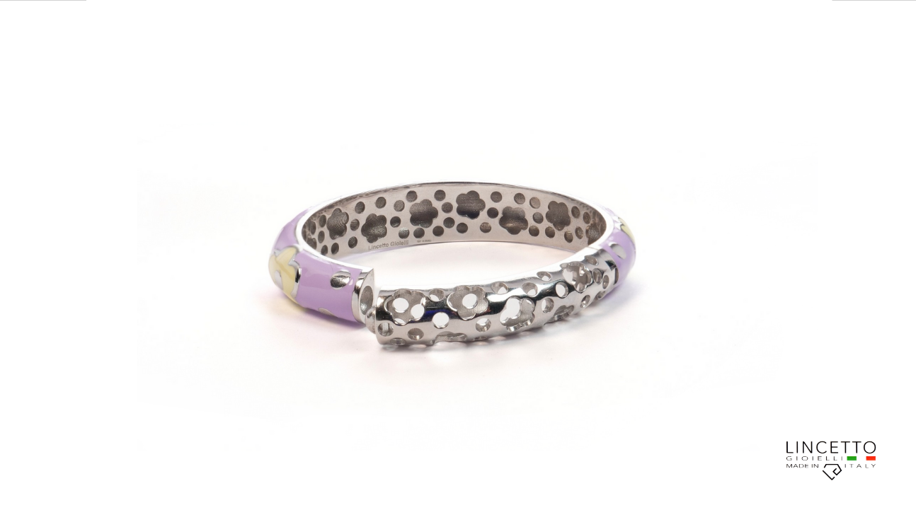 925 silver slave with rose gold plating and yellow enamel flowers and lavender background.