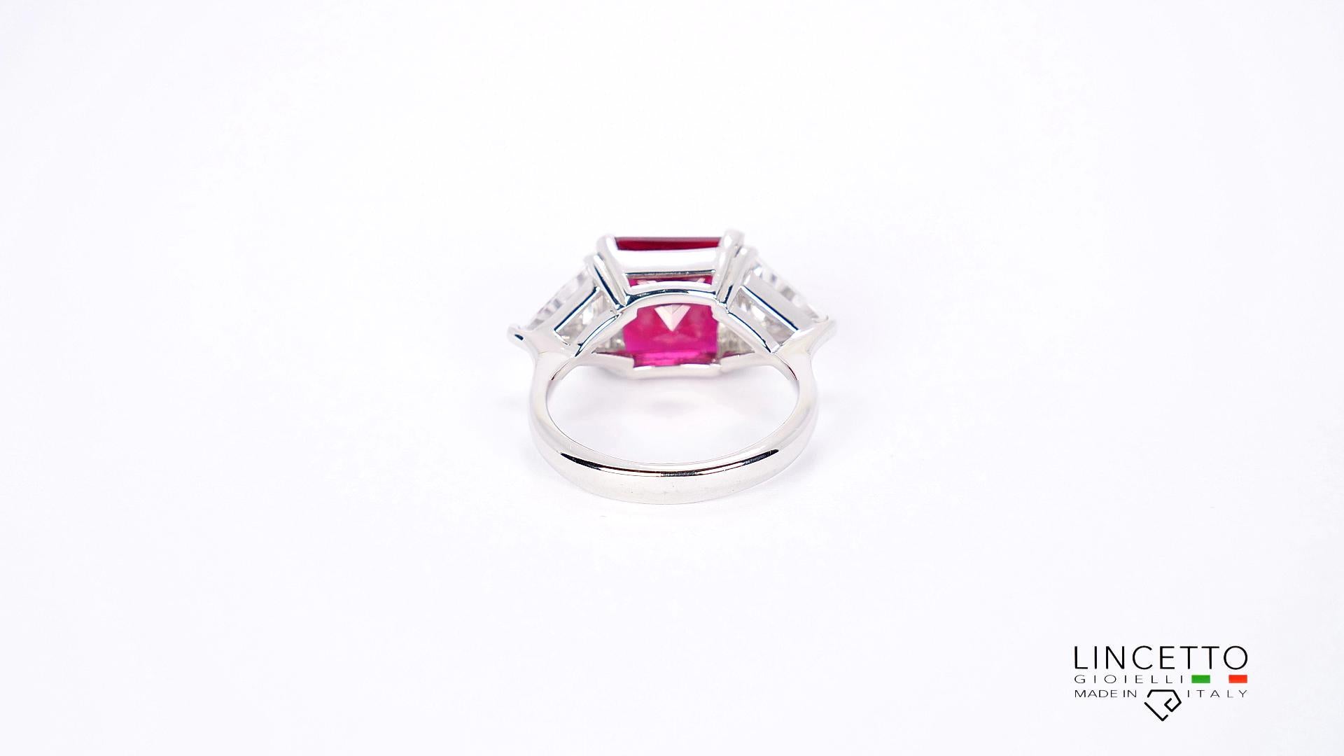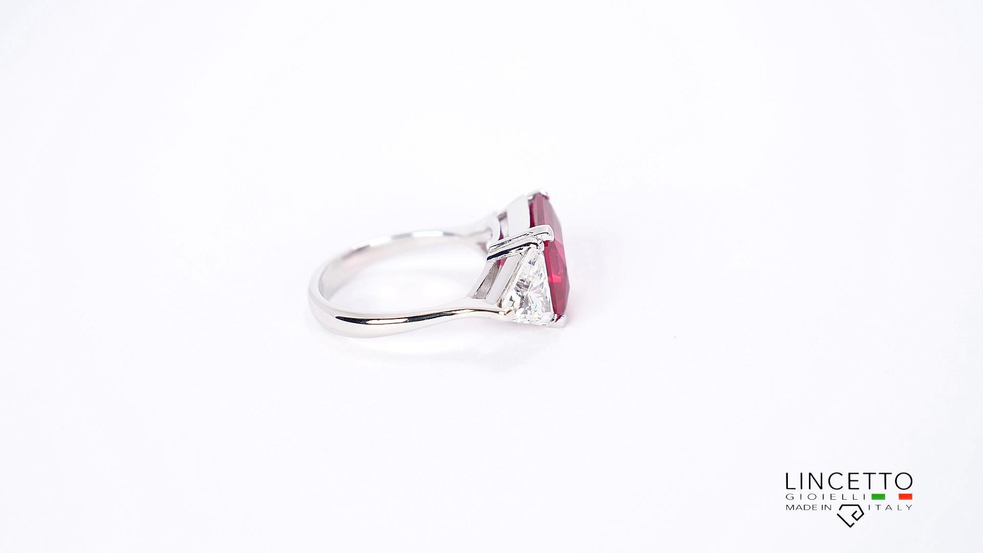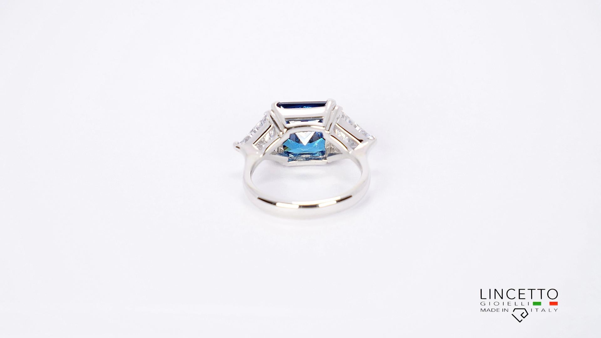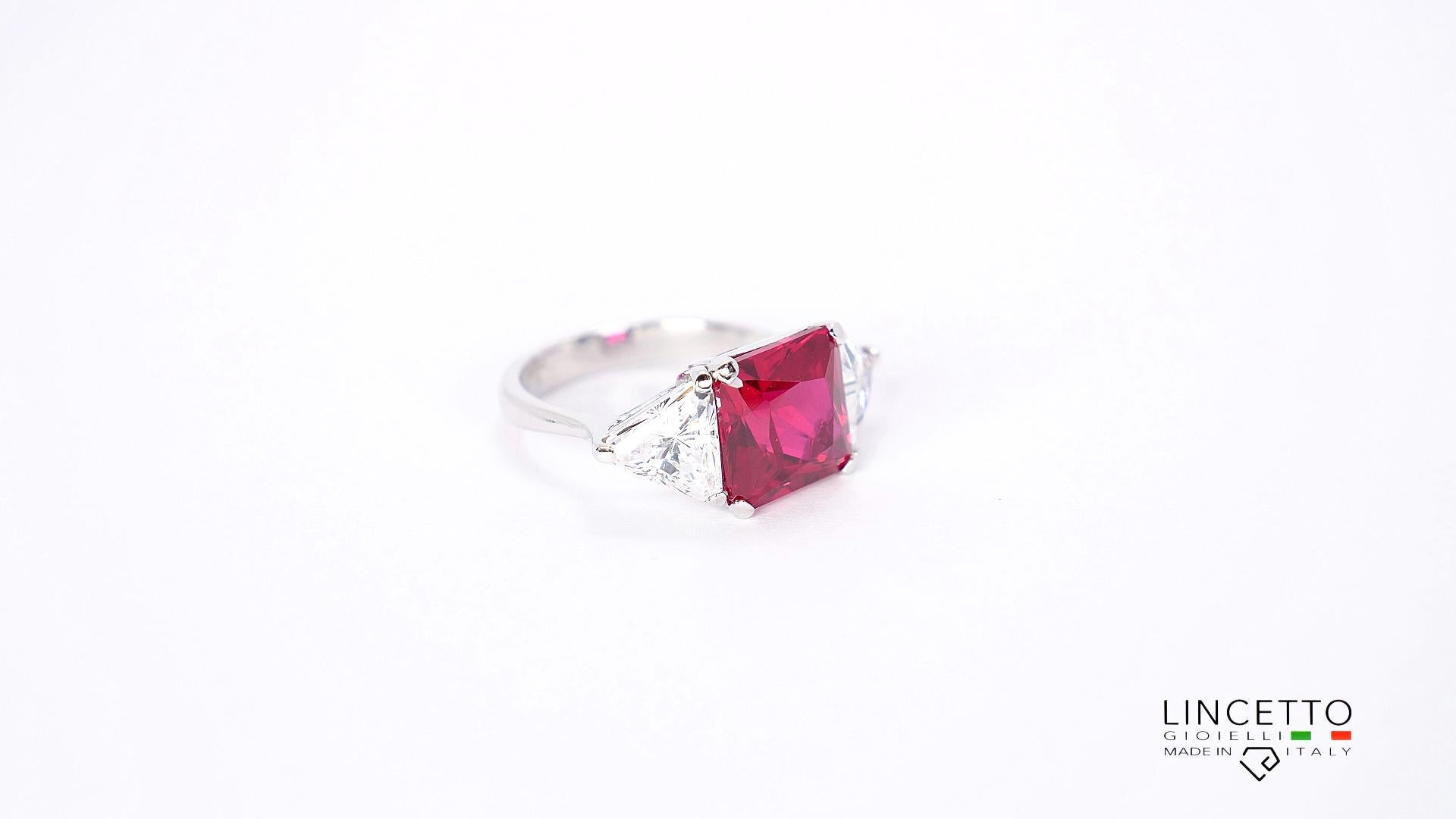 ANELLO CON PIETRA CENTRALE 10X10 E TRIANGOLI LATERALI